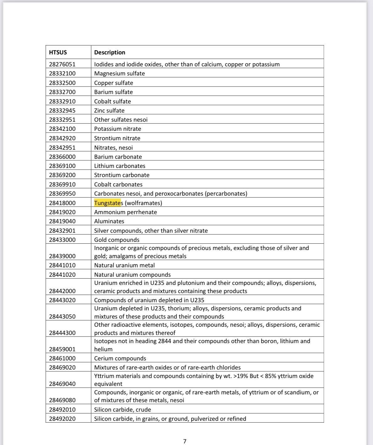 經檢視美國進口稅則文件,本公司產品『鎢酸鈉』,未在加徵關稅之產品項目中,且2024年本公司『鎢酸鈉』出口美國之數量,僅佔總出口量約10%,加之中國商務部於今年2月4日起針對鎢等5大物項實施出口管制,且美國針對中國進口至美國之鎢製品原已加徵25%之進口關稅,因此,在本次美國實施對等關稅後,本公司鎢酸鈉銷售仍具相當競爭力。 此外,子公司『鈷金屬相關製品』,未在加徵關稅之產品項目中,目前尚未出口至美國,故本次美國實施對等關稅,對子公司財務業務亦無影響。 相關連結:https://www.whitehouse.gov/presidential-actions/2025/04/regulating-imports-with-a-reciprocal-tariff-to-rectify-trade-practices-that-contribute-to-large-and-persistent-annual-united-states-goods-trade-deficits/